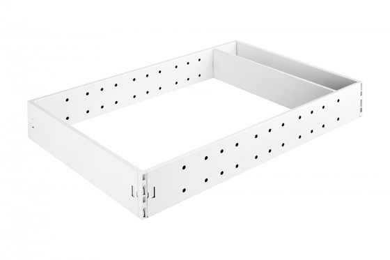 Wkład na sztućce do StrongMax 16. Kompletna obudowa 276x423mm. Podstawowy zestaw do montażu wkładów na sztućce do wszystkich szerokości szuflad. Można go uzupełnić o przegrody i rynienki ze stali nierdzewnej lub rozszerzyć o 94, 182 lub 270 mm. Biały Wysokość systemu wynosi 59mm