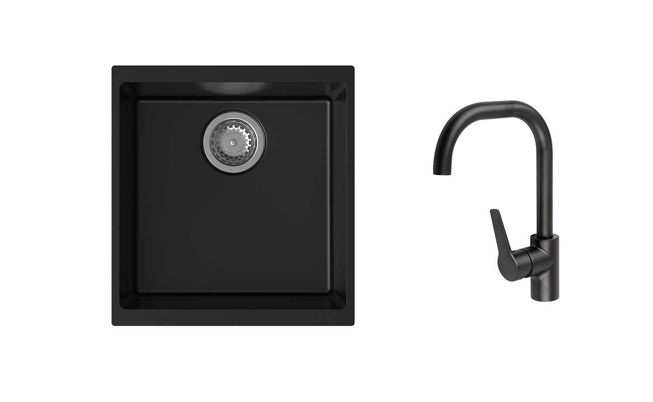 Praktyczny i korzystny cenowo zestaw zlewozmywaka granitowego i baterii w jednym.