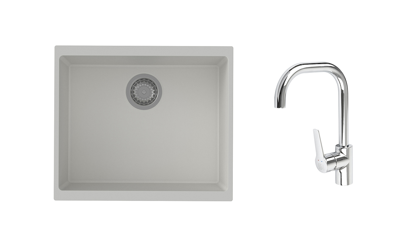Praktyczny i korzystny cenowo zestaw zlewozmywaka granitowego i baterii w jednym.