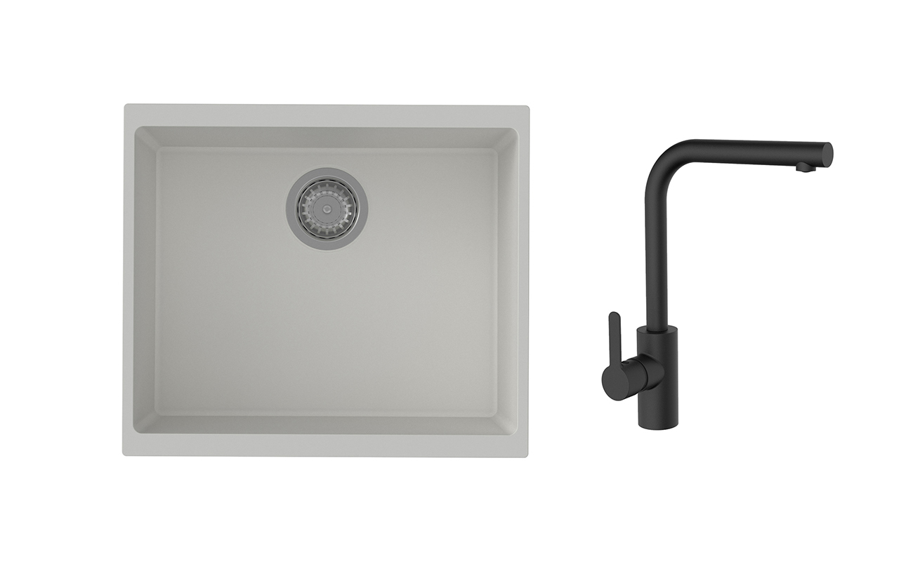 Praktyczny i korzystny cenowo zestaw zlewozmywaka granitowego i baterii w jednym.