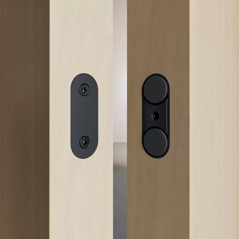 Sada kování pro čtyři křídla s bezfalcovými závěsy (9 ks) a magnetickou aretací (6 ks). Verze bez spodního vedení. Pro výšku dveří max. 2400mm, nosnost 40kg/1 křídlo. Tloušťka materiálu 30 - 45mm. Barva černá (práškově lakovaná).