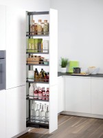 Ani centimetr nazmar! Výsuv na potravinovou skříň DISPENSA umožňuje plynulé vysunutí až 100 kg uložených potravin ze skříně. Instaluje se velmi rychle, nevyžaduje údržbu a lze jej bez problémů vyčistit. To jsou působivé výhody!