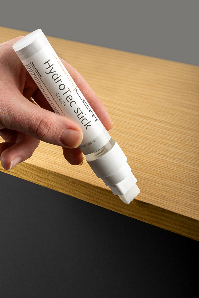 LcM HydroTec stick - to „fix” zamykający po nałożeniu połączenie krawędzi z płytą. Dzięki temu spoina jest odporna na działanie wilgoci. Przeznaczona szczególnie do elementów mebli narażonych na działanie wilgoci (wokół okapów, zmywarek, mebli łazienkowych). Stały kontakt z wilgocią i parą może spowodować pęcznienie płyty meblowej. Hydro Pen uszczelnia gotowy przedmiot chroni przed wnikanie wilgocią i przedłuża wodoodporność. Idealny do szybkiego użycia we wszystkich obszarach - nawet w podróży. Aplikacja jest nieskomplikowana: otwórz pióro, rysuj specjalnym filcem na obszarze, który ma zostać uszczelniony i pozostaw do wyschnięcia na krótki czas.