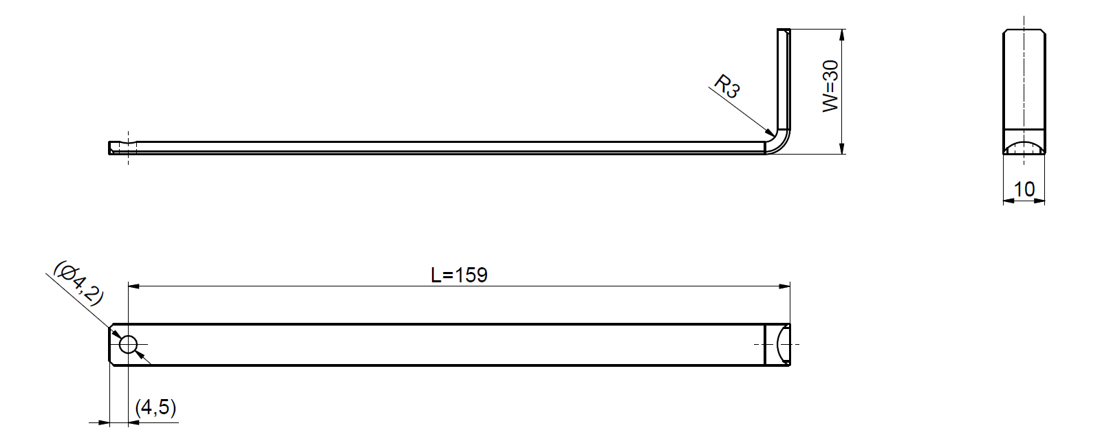 Drążek dla zamku 292 do teczek zawieszanych o szerokości wewnętrznej 412 mm przy użyciu laminatu 19 mm. Dla jednej teczki zawieszanej są potrzebne dwa drążki.
