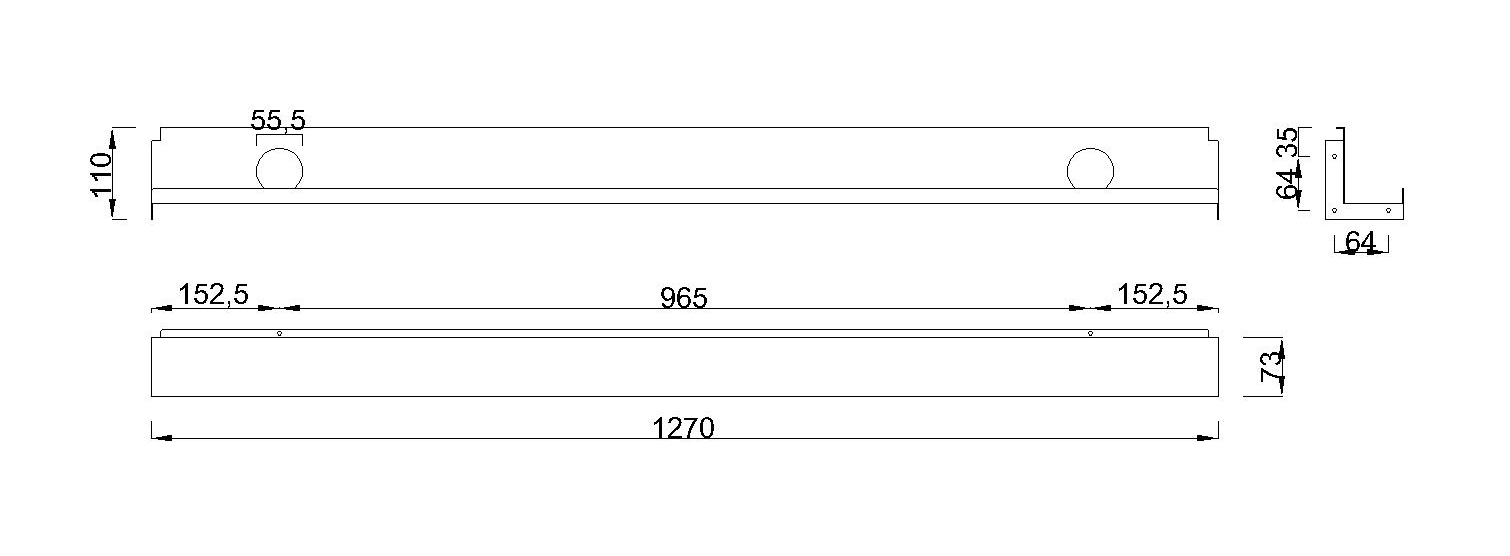 Wymiary: 1270 x 73 x 110 H. W opakowaniu znajduje się 6 szt. śrub.