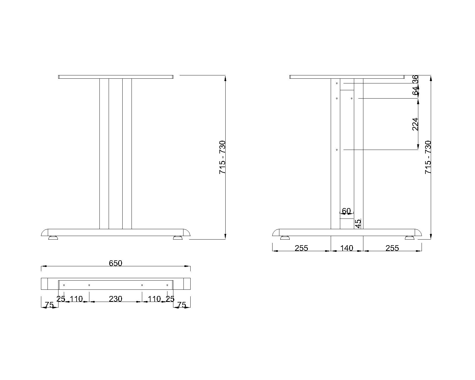 | Wysokość (mm) | 715 - 730 |