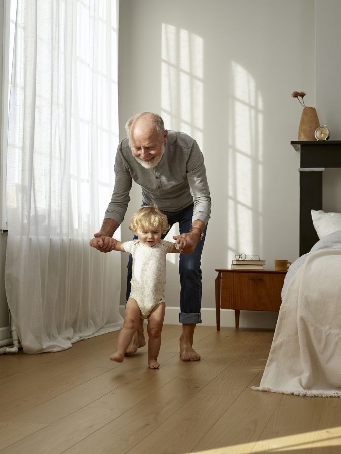 Dlouhé, široké lamely a výrazné podélné maxifáze umocňují atmosféru masivní dřevěné podlahy. A k tomu saténově lakovaná, nebo kartáčovaná a matně lakovaná dotváří přírodní, luxusní vzhled olejované podlahy. Vzhledem k tloušťce lamely a integrované korkové podložce slyšíte pouze tlumený zvuk Vašeho kroku . Tento pocit a zvuk se dají srovnat s klasickou, celoplošně lepenou dřevěnou podlahou. Jedenáct trendově mořených dubů ve vybraném třídění PREMIUM s rustikálním tříděním RUSTIC, americký ořech a exotická afrormosia - to je kolekce PARKY Deluxe+ 06. .