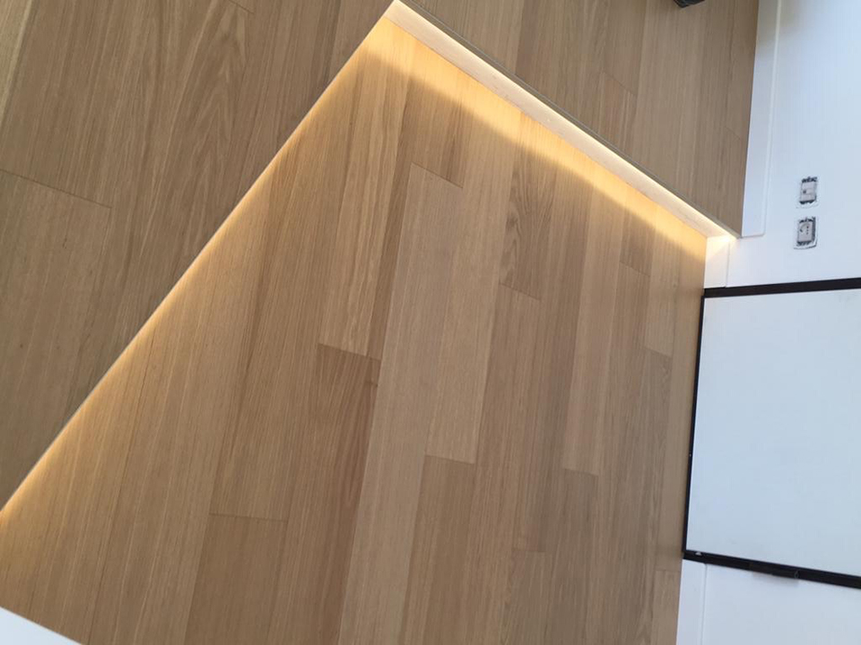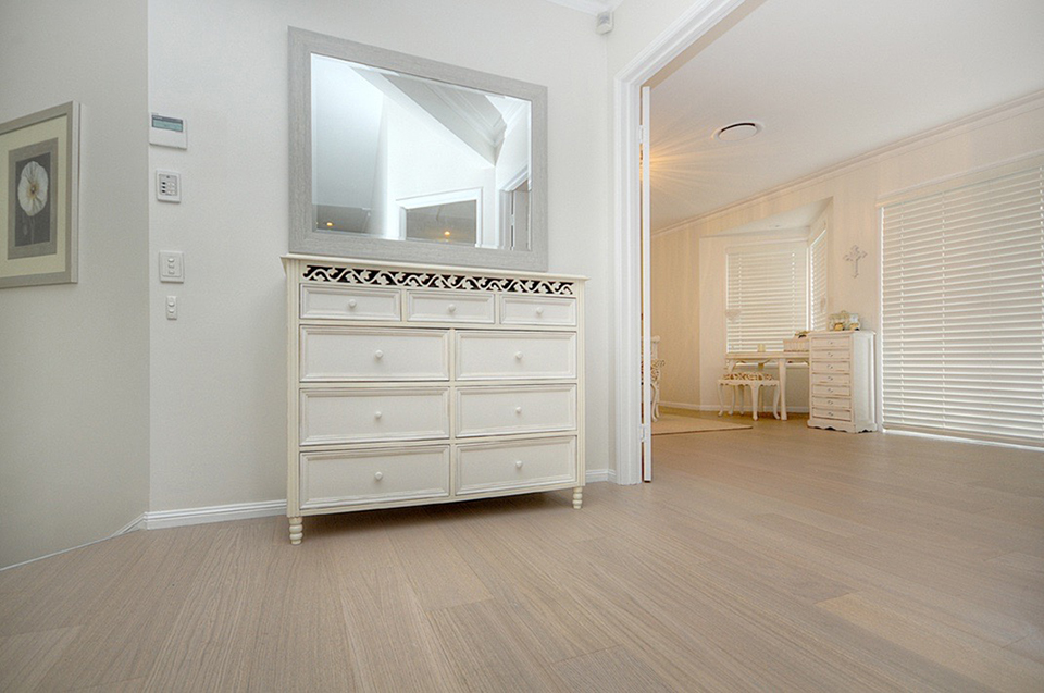 Podlaha je určena pro plovoucí pokládku, ale doporučujeme velmi zvážit celoplošné lepení (,které posunuje celkové vnímání podlahy o třídu výš. Přinese navíc další benefity: K napojení na dlažbu, kamennou podlahu nebo vedlejší místnost nepotřebujete rušivé dilatační profily, stačí tenkou spáru přetmelit akrylovým nebo polymerovým tmelem. Navíc získáte podlahu s tlumeným zvukem chůze, kde nehrozí občasné vrznutí a klapot podpatků.