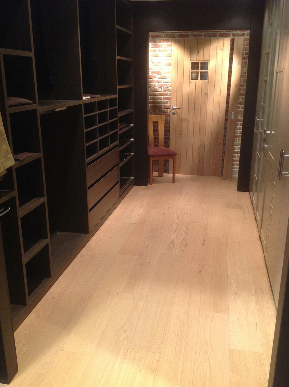 Podlaha je určena pro plovoucí pokládku, ale doporučujeme velmi zvážit celoplošné lepení (,které posunuje celkové vnímání podlahy o třídu výš. Přinese navíc další benefity: K napojení na dlažbu, kamennou podlahu nebo vedlejší místnost nepotřebujete rušivé dilatační profily, stačí tenkou spáru přetmelit akrylovým nebo polymerovým tmelem. Navíc získáte podlahu s tlumeným zvukem chůze, kde nehrozí občasné vrznutí a klapot podpatků.