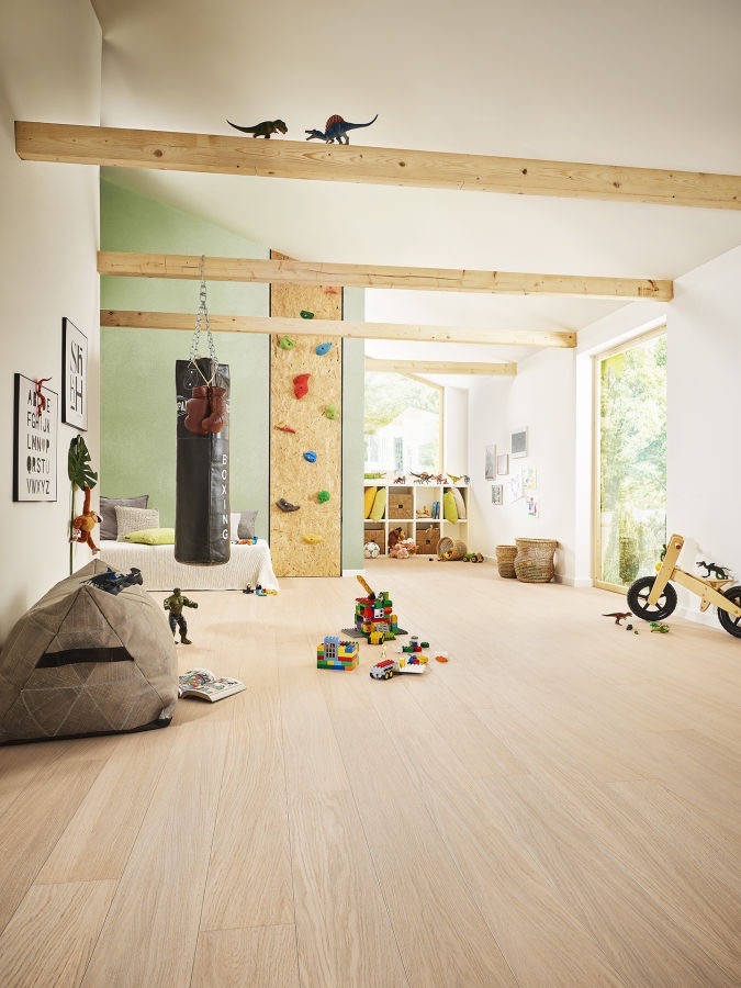 Podélná výrazná maxifáze umocňuje atmosféru masivní dřevěné podlahy. Summit 06 je podlaha s nebývalou odolností proti škrábancům a vlhkosti, už během stavby oceníte její odolnost proti zbytkové vlhkosti z mokrých procesů. Ne vždy šetrné hry Vašich dětí a drápky domácích mazlíčků podlaze Summit 06 také neublíží.