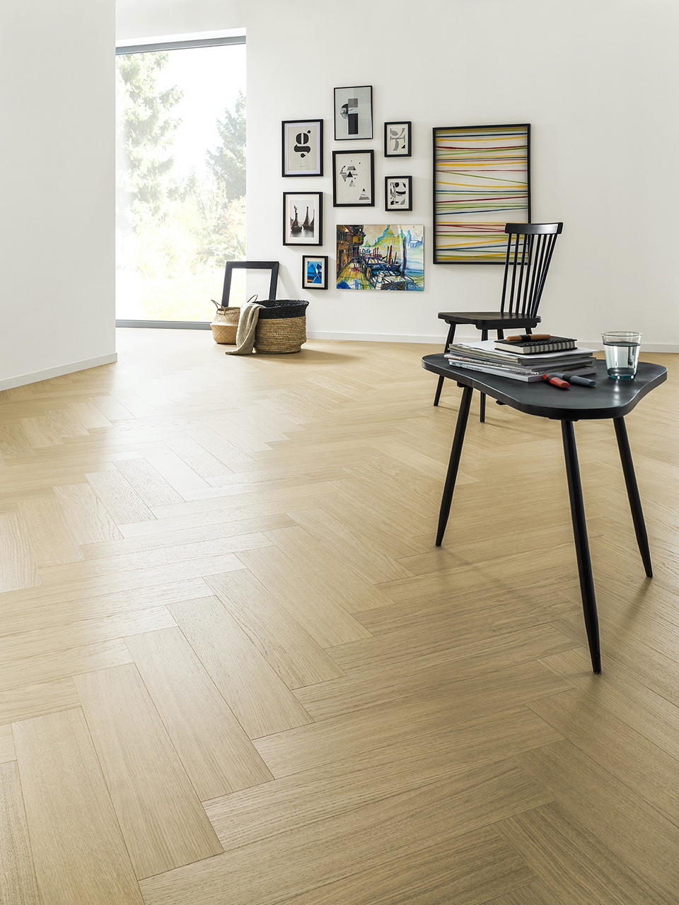 Kolekce Parky Swing 06 se zámkovým systémem na čelním spoji Unifit X®, vhodná pro pokládku do rybiny v menších prostorech. Tento nádherný typ pokládky podlahy tu je již léta, ale právě teď je oblíbenější, než kdykoli jindy. Nenechte se zmýlit, tento trend nikdy nezmizí. Tento typ pokládky dodává Vašemu interiéru jedinečný styl, ať už v tradičním domě, městském bytě nebo v ultramoderním interiéru.