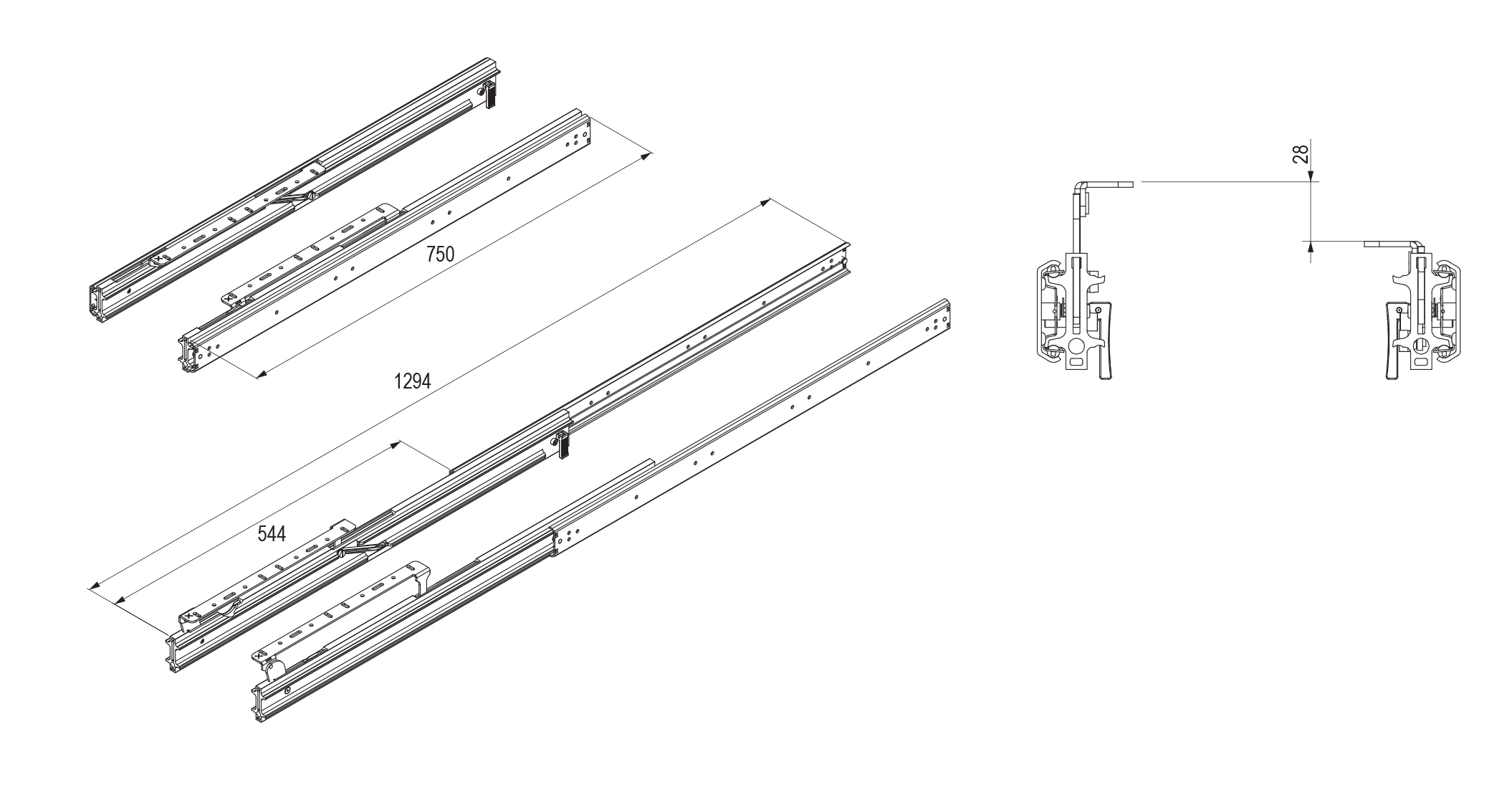POETTKER prowadnica stołowa Frontslide Basic-BL/750.4