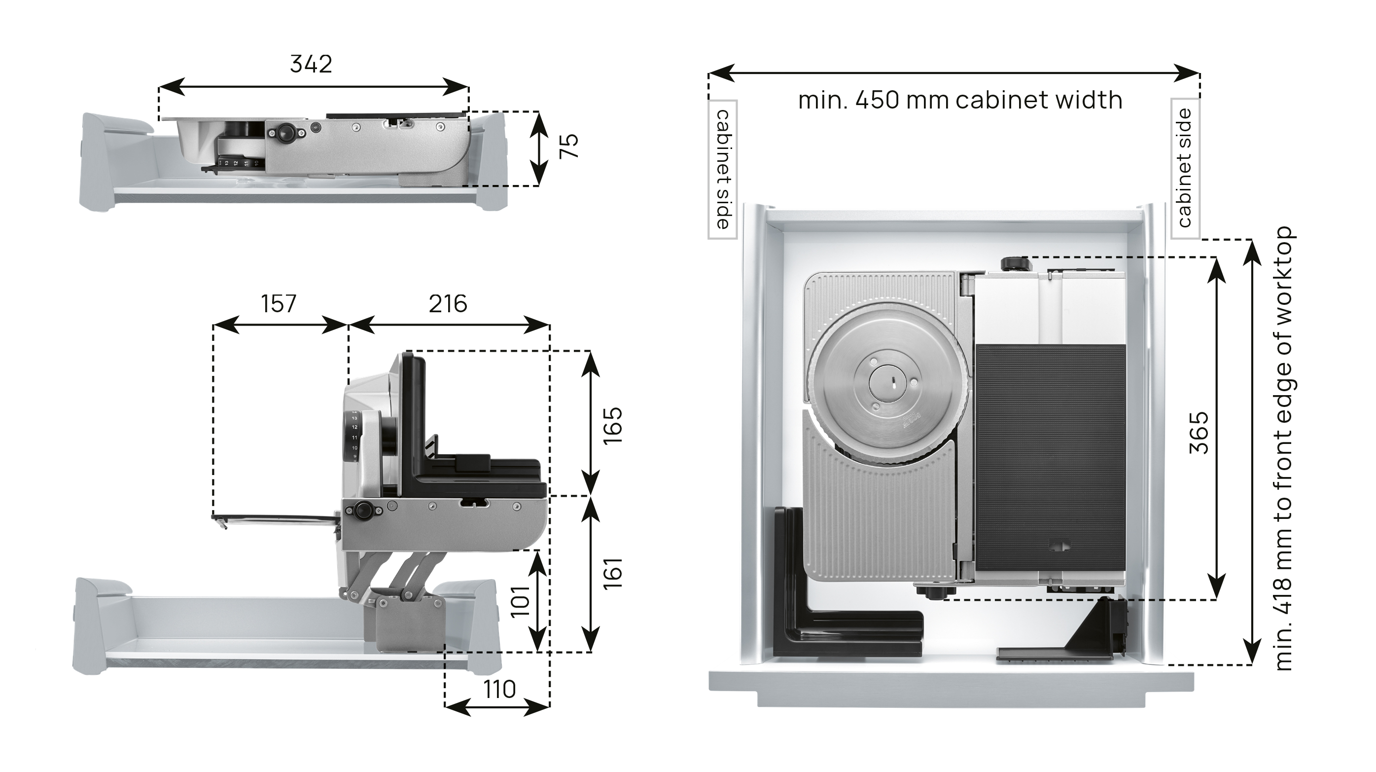 Uniwersalna krajalnica do zabudowy w: 75 mm sz: 342 mm gł: 365 mm