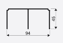 W zastępstwie za 98051. Inna wysokość - 45 mm zamiast 37 mm. Tor górny do listew Future, Comfort, Minicomfort, Unicomfort, Master. Odpowiedni wózek - 98092 (płyta wiórowa 18 mm) lub 98048 (płyta wiórowa 10 mm lub szkło). Tor dolny - Doubler.