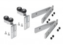 Komplet okuć na jedno ukośne skrzydło. Do płyty 10mm.Szafa musi mieć min.3 skrzydła! Nalezy zastosować 3m tor 98077 , który mocuje się na spodniej stronie półki szafy. Długość toru musi wynosić min. 2/3 szerokości szafy. Jedynie do zastosowania z rączką Fox.