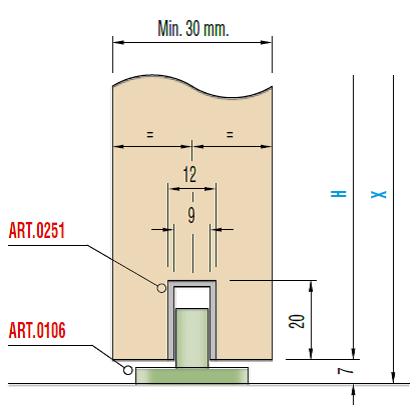 Dolna listwa do zafrezowania (wysokość 20mm, szerokość 12mm) na skrzydło drzwiowe, łatwiejszy ruch na bolcu (87411).