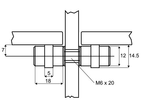 Podwójna podpórka szklanych półek przeznaczona jest do boksów z szklanymi bokami. Grubość szklanego boku 6-8 mm.