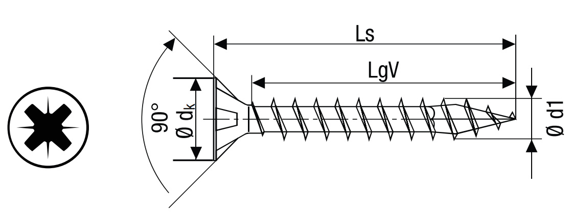 typ bitu: Cross recess PZ 2