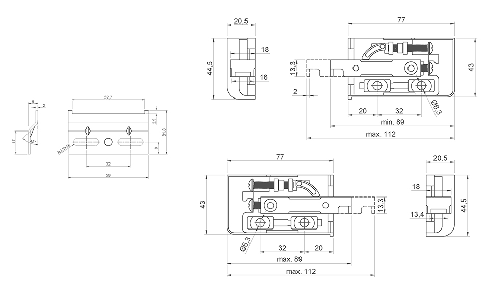 Regulacja wysokości +/- 8mm, głębokość +/- 10mm