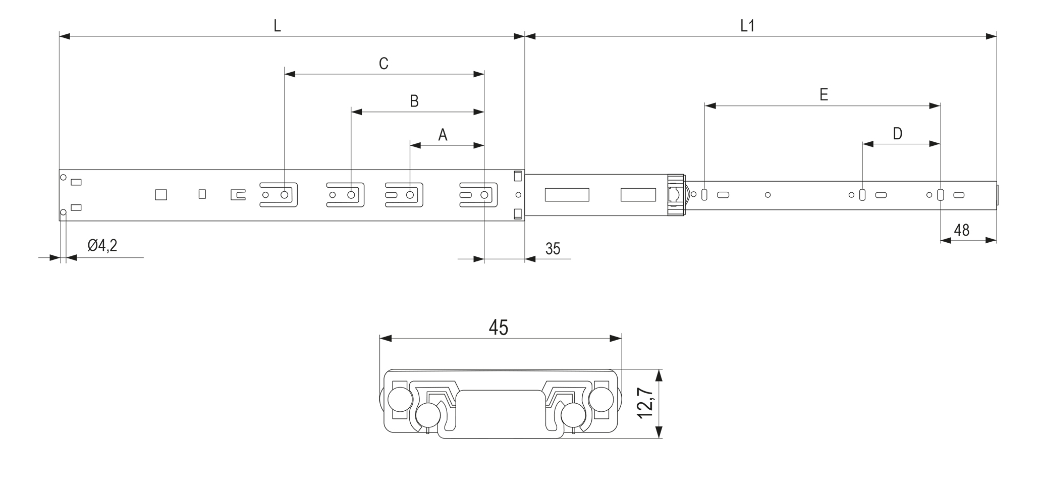 Długość nominalna i nośność prowadnic podana jest w nazwie produktu.
