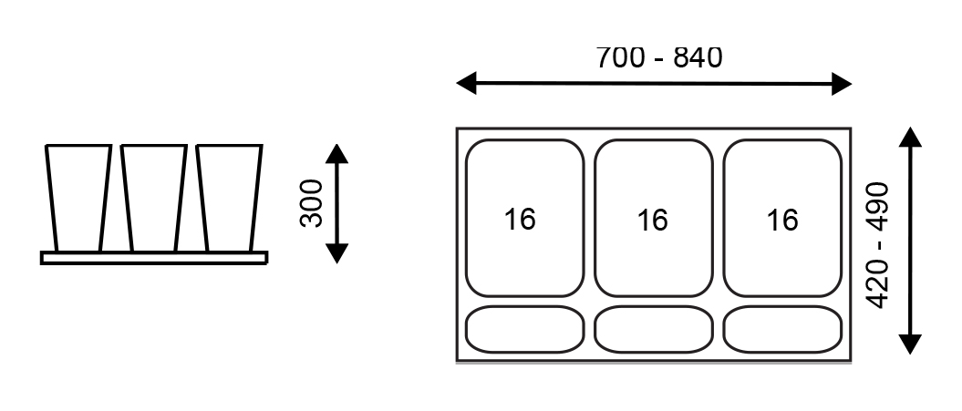 StrongBins sorter 3x16 l wkladany do szuflady 800 - 900 mm, antracyt