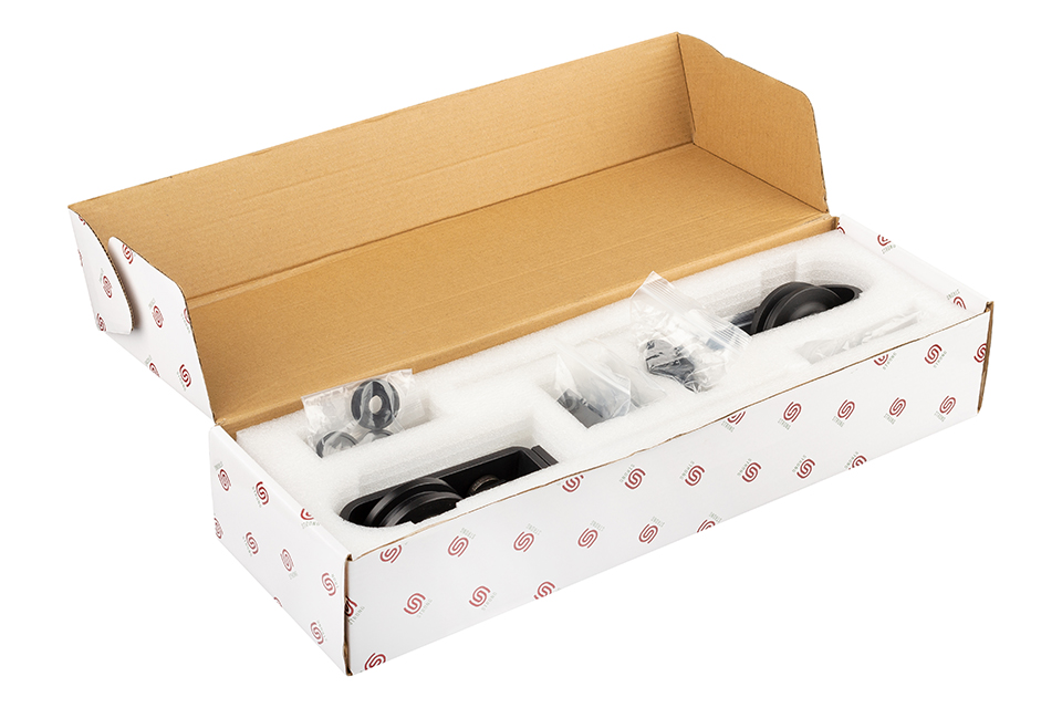 Zestaw okuć do dwóch składanych drzwi. Maksymalna nośność jednego skrzydła – 40kg. Maksymalna szerokość jednego skrzydła – 450mm.
