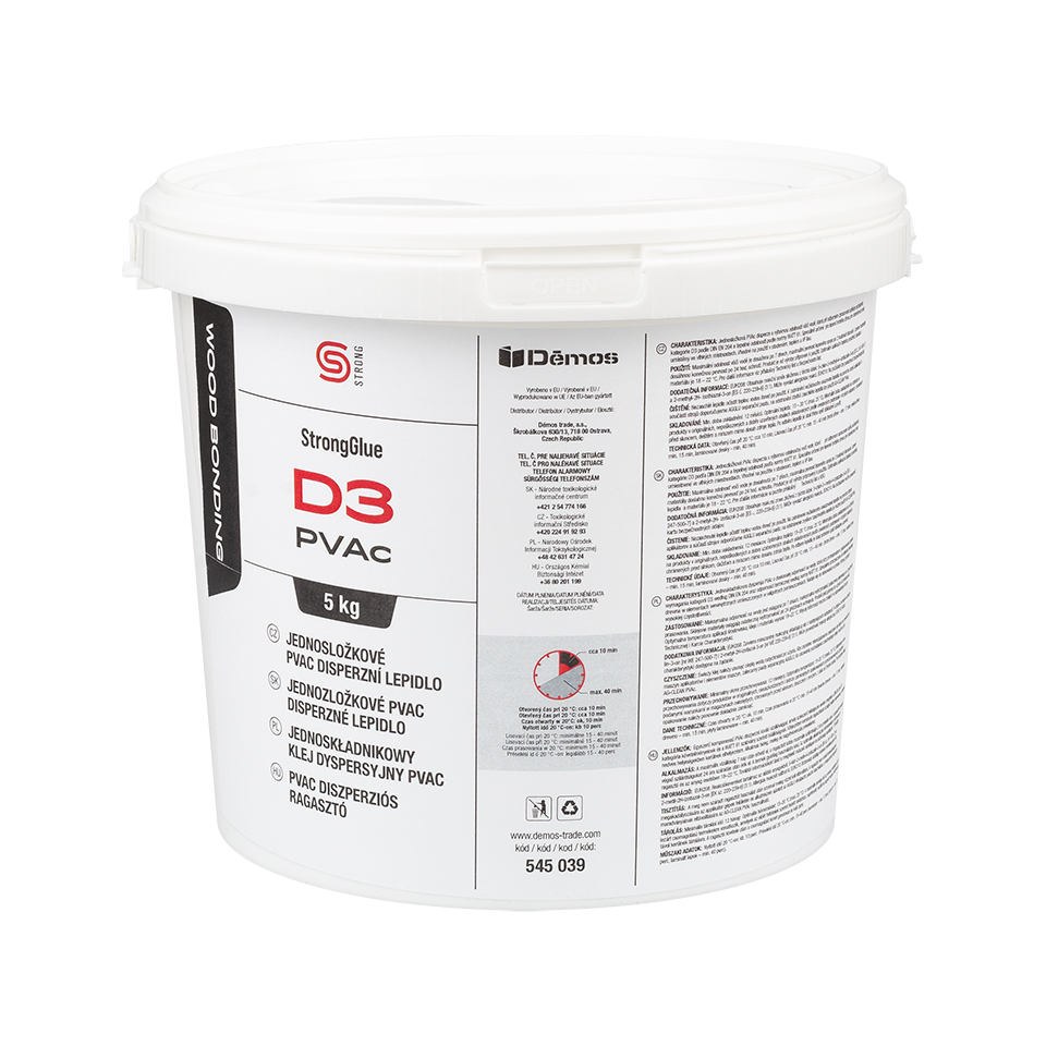 StrongGlue D3 je jednosložková PVAc disperze na vodní bázi s vynikající odolností proti vodě. StrongGlue D3