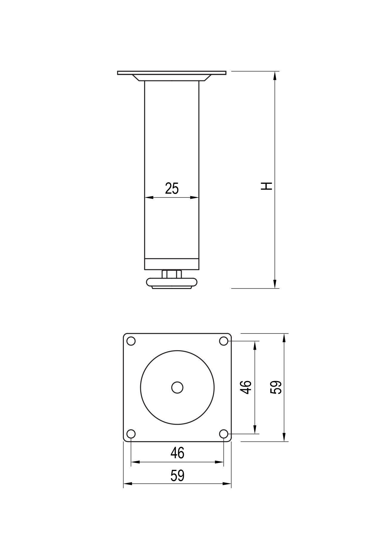 Średnica 25 mm, wysokość 150 mm