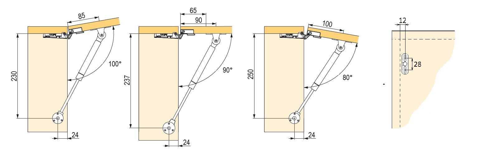 Podnośnik automatyczny do drzwiczek, obudowa oraz mocowania w kolorze białym. Do ramki aluminiowej należy dokupić mocowanie 276001.