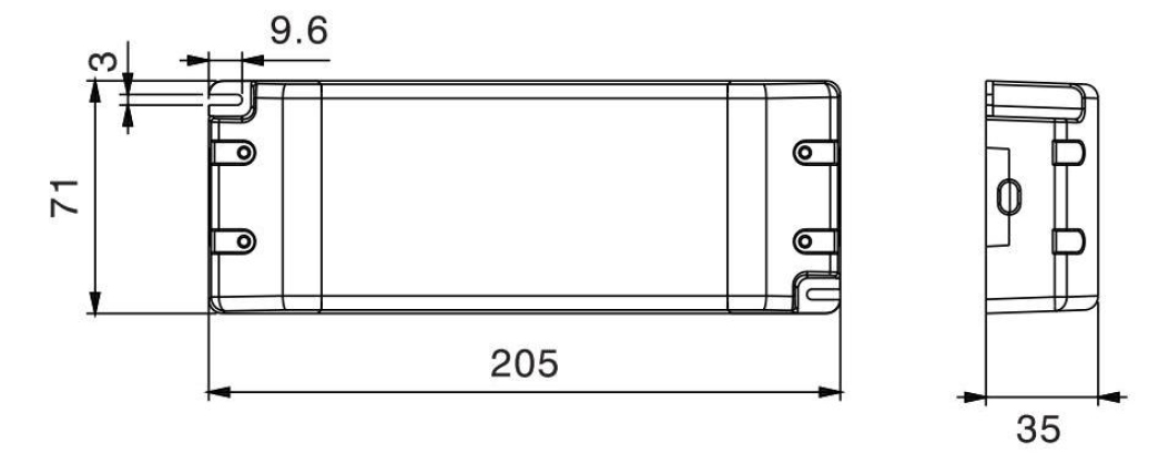 - Wymiary: 205 × 71 × 35 mm.