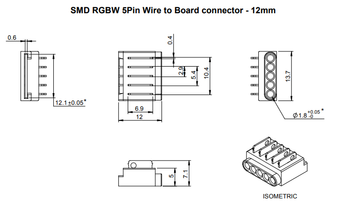 Złączka do łączenia taśmy LED RGBW – kabel (pięciożyłowy). Odpowiednia do taśm LED o szerokości 12 mm, patrz powiązany asortyment. Złączkę nasuwa się na taśmę LED i za pomocą kleszczy dociska piny kontaktowe do taśmy LED, które następnie wbiją się w taśmę LED. Złączka jest przeznaczona do jednorazowego użytku. Do stosowania w profilach o minimalnej szerokości 14 mm i wysokości 5,1 mm.