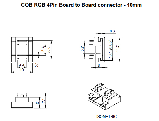 Złączka do łączenia taśm LED CCT/RGB COB – przewód (trójżyłowy/czterożyłowy). Odpowiednia do taśm LED o szerokości 10 mm, patrz asortyment powiązany. Złączkę nasuwa się na taśmę LED i za pomocą kleszczy dociska się piny kontaktowe do taśmy LED, które następnie wbiją się w taśmę LED. Złączka jest więc przeznaczona do jednorazowego użytku. Do stosowania w profilach o minimalnej szerokości 12 mm i wysokości 5,1 mm.