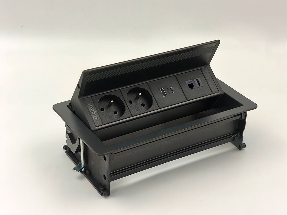 StrongPower elektrická zásuvka FlipUpPush, USB, RJ45, HDMI, FR, černá