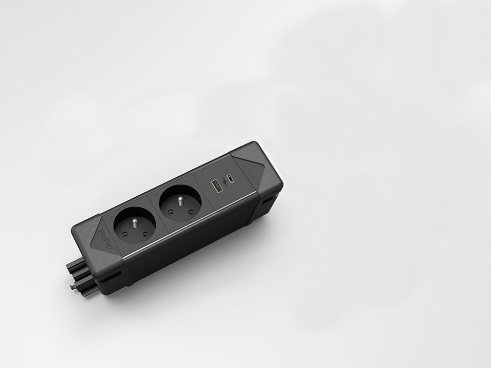 Jednoduché přípojné místo k připevnění pod desku nebo pomocí vrutů kamkoli jinam Možnost propojení několika zásuvek za sebe pomocí kabelu GST18