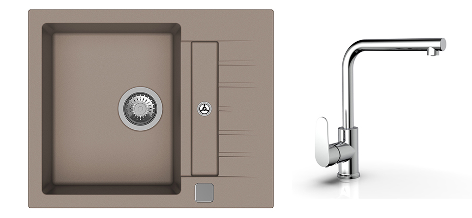 StrongSinks S3 Set zlew Vardar 615 615x500mm granit beż + Bater. Stréva chrom