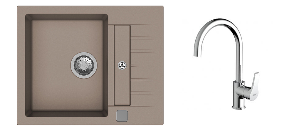 StrongSinks S3 Set zlew Vardar 615 615x500mm granit beż + Bateria Rhona chrom