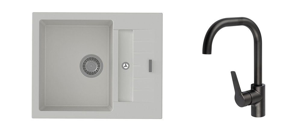 StrongSinks S3 Set zlew Vardar 615 615x500mm granit biały + Bat. Garonne czarna