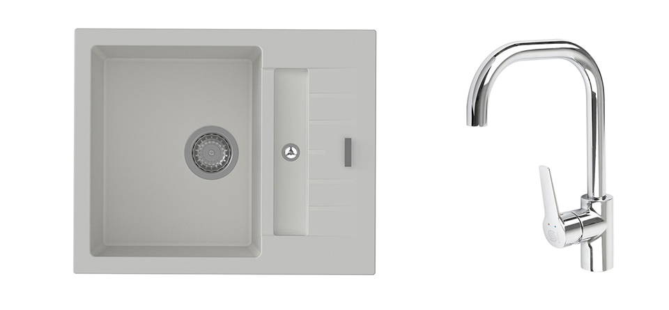 StrongSinks S3 Set zlew Vardar 615 615x500mm granit biały + Bater. Garonne chrom