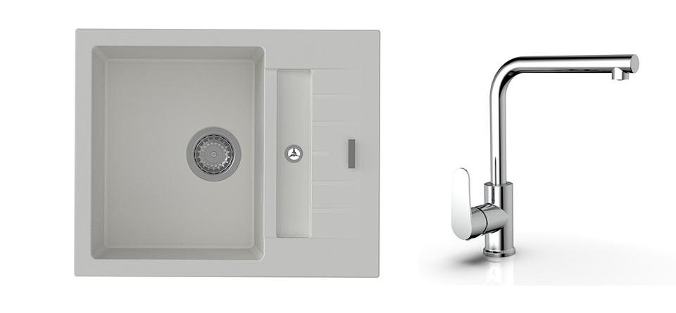 StrongSinks S3 Set zlew Vardar 615 615x500mm granit biały + Bater. Stréva chrom