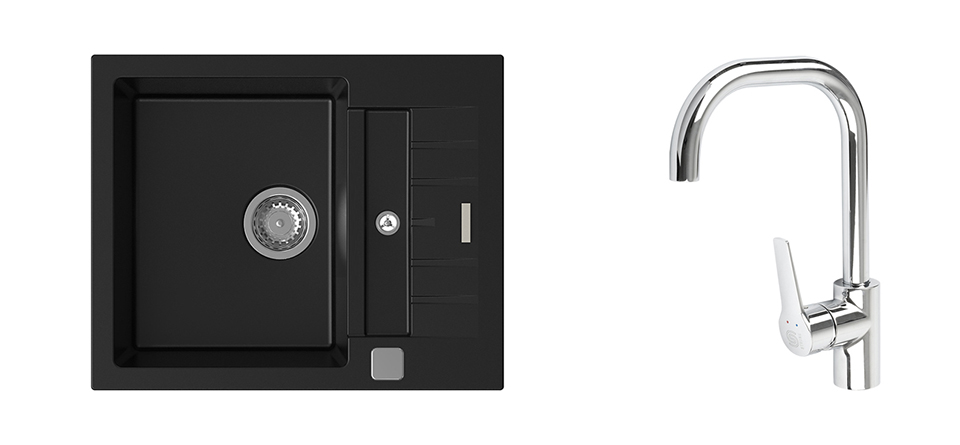 StrongSinks S3 Set zlew Vardar 615 615x500mm granit czarny + Bat. Garonne chrom