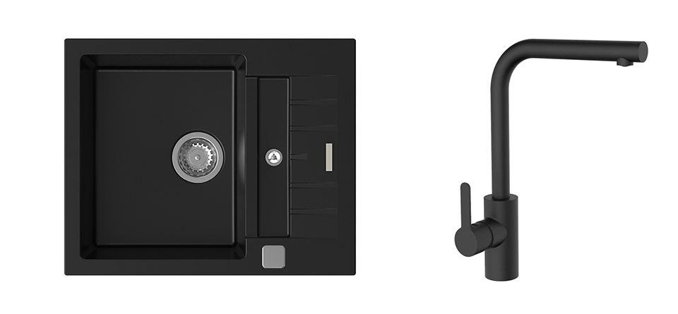 StrongSinks S3 Set zlew Vardar 615 615x500mm granit czarny + Bater. Ipoly czarna