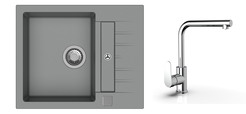StrongSinks S3 Set zlew Vardar 615 615x500mm granit szary + Bater. Stréva chrom