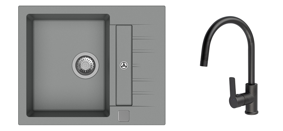 StrongSinks S3 Set zlew Vardar 615 615x500mm granit szary + Bateria Loira czarna