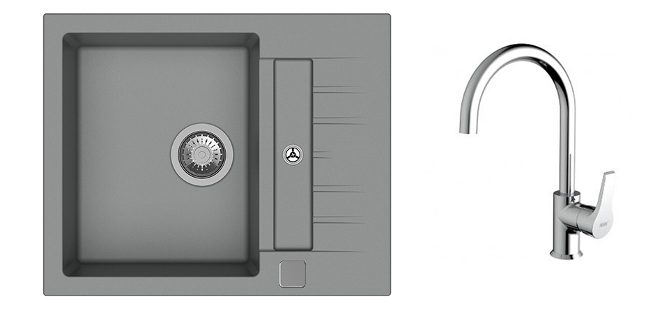 StrongSinks S3 Set zlew Vardar 615 615x500mm granit szary + Bateria Rhona chrom