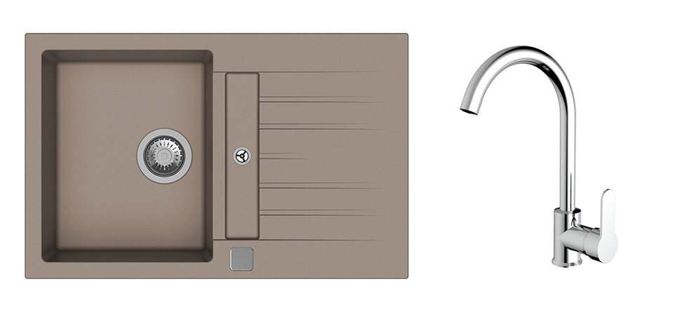 StrongSinks S3 Set zlew Vardar 780 780x500mm granit beż + Bateria Seina chrom