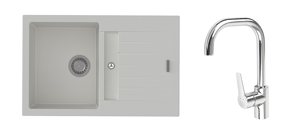 StrongSinks S3 Set zlew Vardar 780 780x500mm granit biały + Bateria Garonne chr.