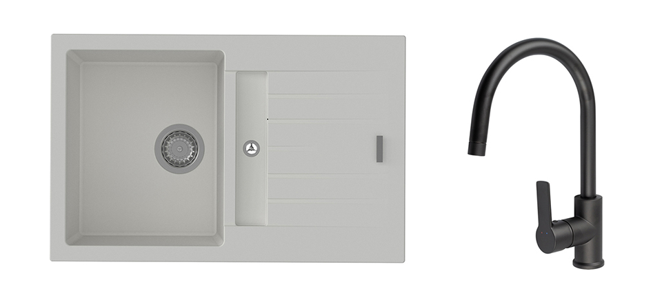 StrongSinks S3 Set zlew Vardar 780 780x500mm granit biały + Bateria Loira czarna