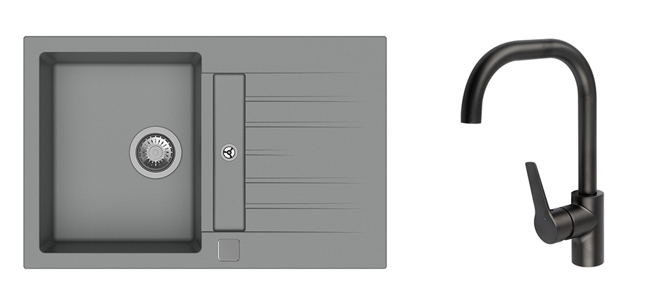 StrongSinks S3 Set zlew Vardar 780 780x500mm granit szary + Bat. Garonne czarna