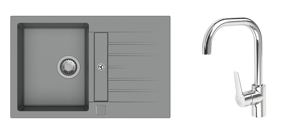 StrongSinks S3 Set zlew Vardar 780 780x500mm granit szary + Bateria Garonne chr.