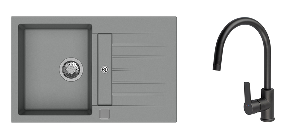 StrongSinks S3 Set zlew Vardar 780 780x500mm granit szary + Bateria Loira czarna